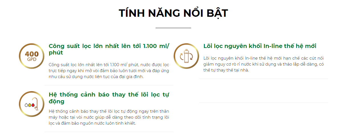 | Công suất lọc tối đa | 1.1 L/phút ~ 66L/giờ |